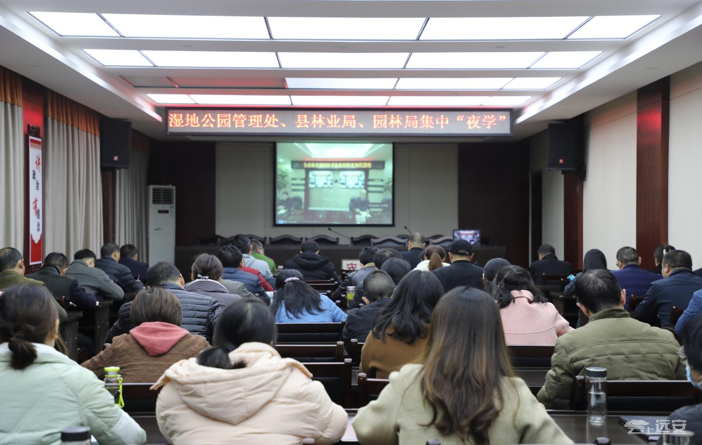 12月6日,湿地公园管理处、县林业局、园林局集中开展本月第二次视频“夜学”,市林业局和园林局森林防火预防中心主任马明华作专题讲座,湿地处、县林业局、园林局机关及城区二级单位全体干部职工参加视频“夜学”。