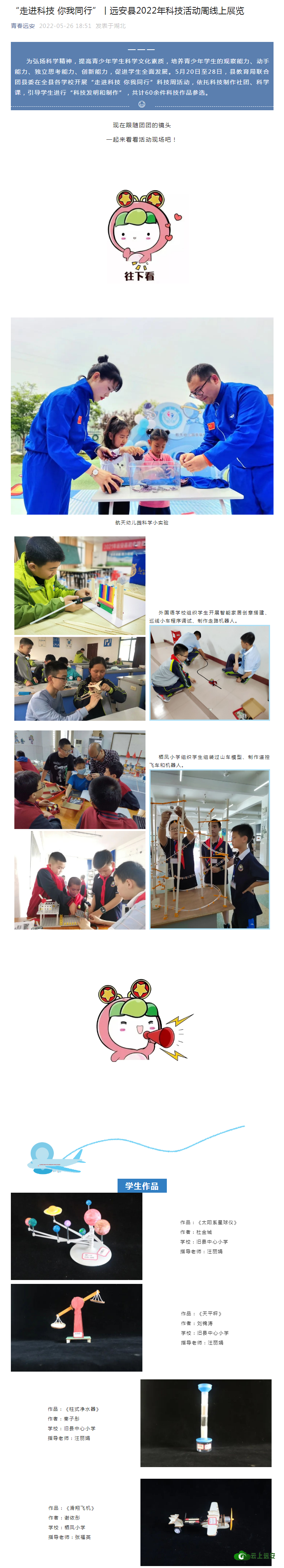 为加快推进科技规划政策扎实落地,广泛宣传科技创新成果,开展科学普及惠民活动,根据国家、省、市统一安排部署,县科技经信局统筹策划,精心准备,以“走进科技,你我同行”为主题,会同相关部门在5月20日至28日成功举办了远安县2022年科技活动周,开展了一系列贴近实际、贴近生活、贴近群众的科普活动,取得了丰硕成果。