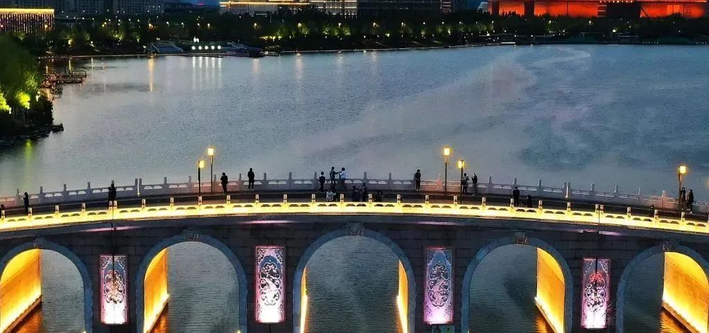 今年“五一”假期,游客在唐山市南湖观光(无人机照片)。杨世尧摄(新华社)