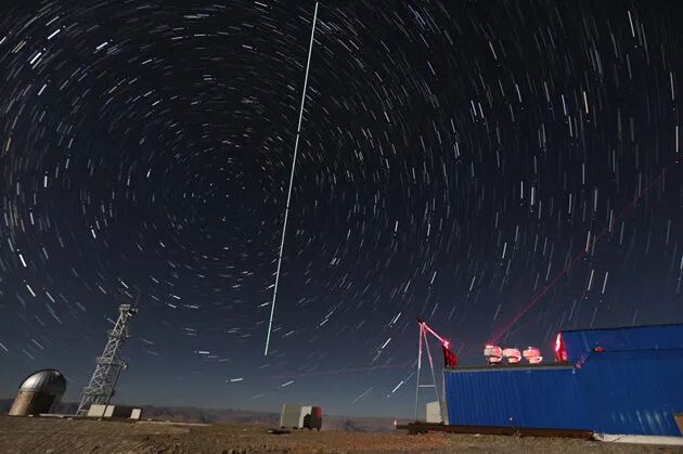 在西藏阿里观测站,“墨子号”量子科学实验卫星过境,科研人员在做实验(合成照片)。 (新华社)