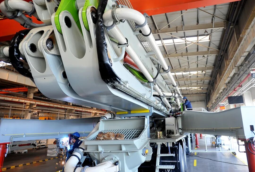 河北宣化经济开发区的北汽福田雷萨重机公司内,工人在装配泵车。陈晓东摄(中经视觉)